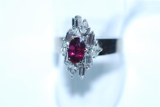 A RUBY AND DIAMOND DRESS RING IN 18CT WHITE GOLD