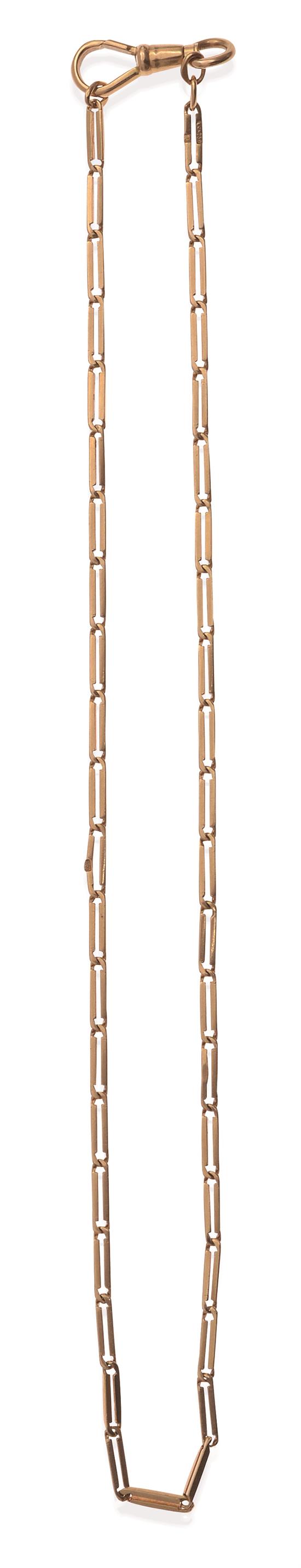 Comprising elongated links to a swivel clasp, in 18ct gold, total length 430mm, Russian hallmarks.