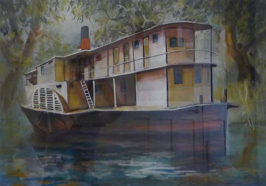 KARLIS MEDNIS, PADDLE STEAMER 1976, WATERCOLOUR 52 X 72.5CM