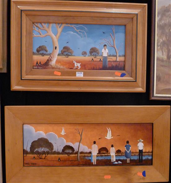 TWO WORKS BY GEORGE KENDALL OUTBACK SCENES, OIL ON BOARD