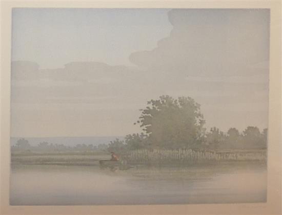 ARTIST UNKNOWN, SIGNED ILLEGIBLY LOWER RIGHT, LAKE SCENE, ETCHING, 124/150
