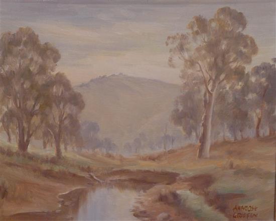 AMBROSE GRIFFIN, RIVER LANDSCAPE, OIL ON BOARD, 40 X 50CM