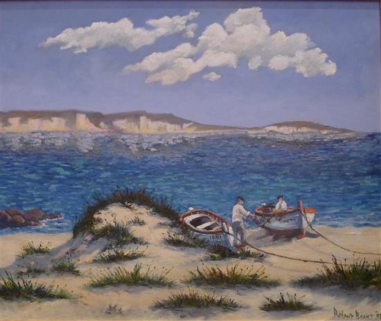 ROLAND BONET, FISHERMAN, OIL ON BOARD