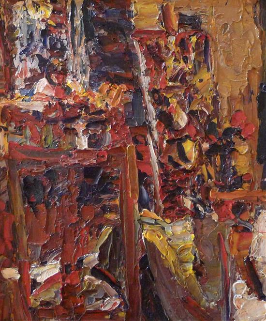 ROBERT BARNES, IN THE STUDIO, 1985, OIL ON BOARD, 29.5 X 24.5 CM