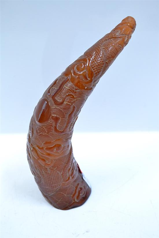 CHINESE HORN CARVING DEPICTING A DRAGON AMID RUYI AND CLOUDS