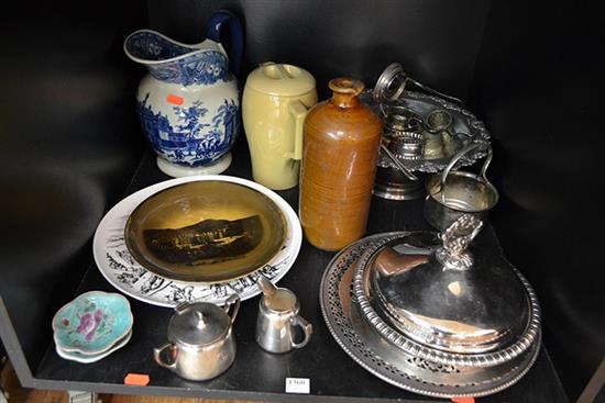 ONE SHELF OF ASSORTED ITEMS INC. EP, CHINA, WEDGWOOD, HECKWORTH ETC