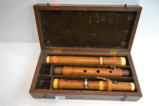 EARLY 19TH CENTURY WOOD CASED WILLIAM HENRY POTTER BOXWOOD FLUTE WITH IVORY MOUNTS
