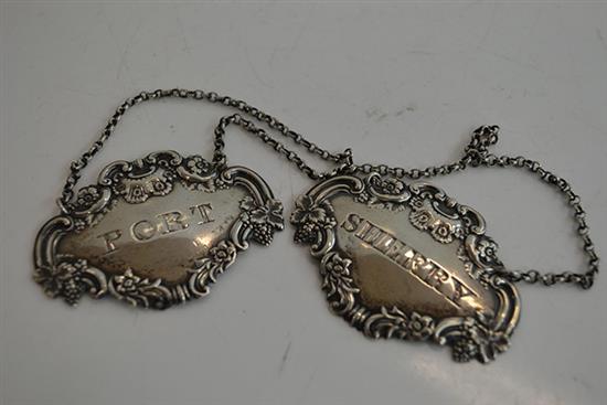 A PAIR OF GEORGIAN EDINBURGH SILVER SHERRY AND PORT DECANTER LABELS