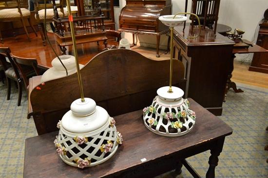 TWO ITALIAN STYLE PORCELAIN LIGHT SHADES WITH ROSE MOTIFS, SIGNED M. MORETTI