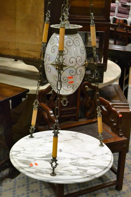 A CONTINENTAL CEILING LIGHT WITH FLOATING MARBLE BASE