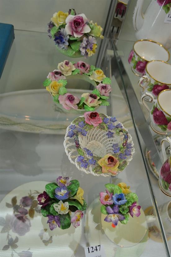 FIVE ENGLISH CHINA FLORAL ADORNMENTS