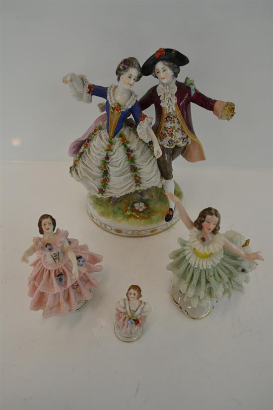 FOUR OF FOUR LACE FIGURES INCLUDING DANCING COUPLE (FAULTS)