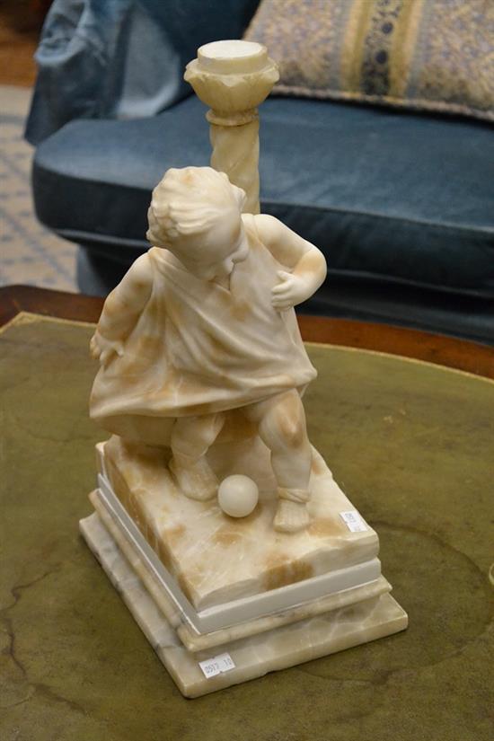 AN EARLY 20TH CENTURY MARBLE FIGURE ON BASE (REPAIRED)