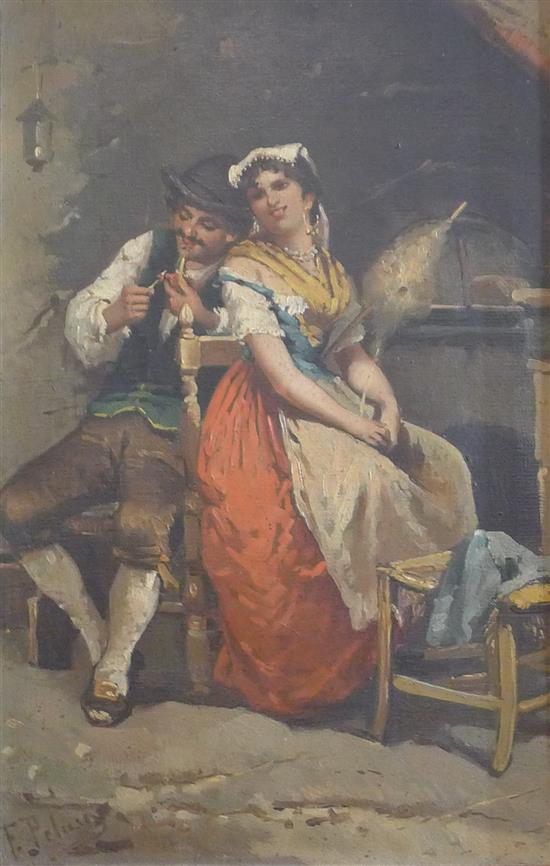 FRANCISCO PALUSO, COUPLE SEATED, OIL ON CANVAS, 38 X 25CM