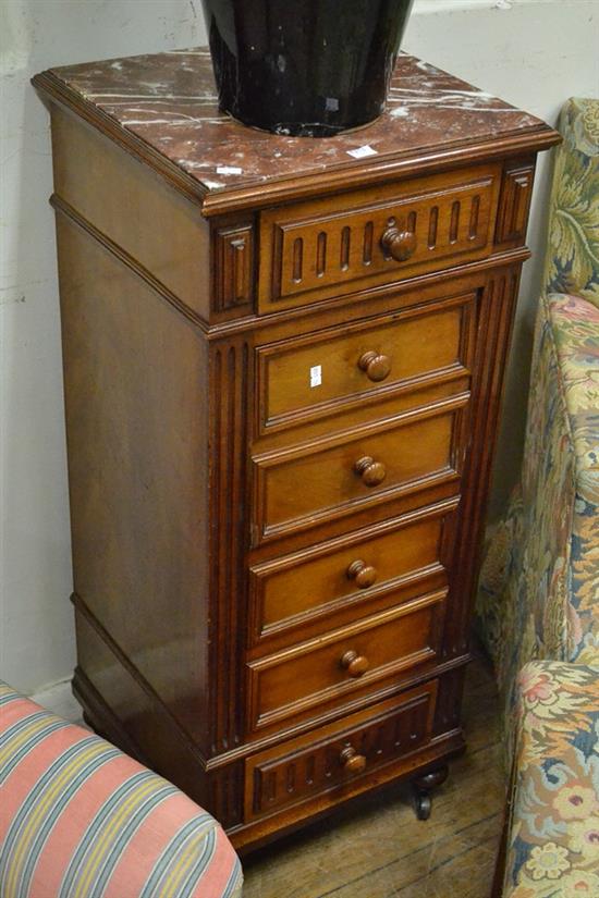 A LOUIS STYLE TALLBOY WITH MARBLE TOP