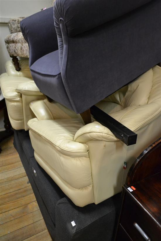 A PAIR OF WHITE LEATHER ARM CHAIRS BY FABIO MAZZETO, ITALY