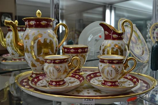 LIMOGES DECOR MAIN PORCELAIN NAPOLEONIC THEMED TEA SERVICE AND TRAY, SIGNED A. BRISSON