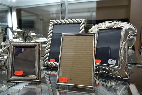 ART NOUVEAU STERLING SILVER PHOTO FRAME AND THREE EP MOUNTED FRAMES