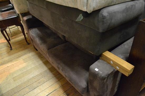 A CONTEMPORARY MICRO SUEDE SOFA BED WITH MATCHING DOUBLE SOFA