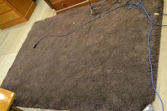 A CONTEMPORARY BROWN SHAG PILE RUG