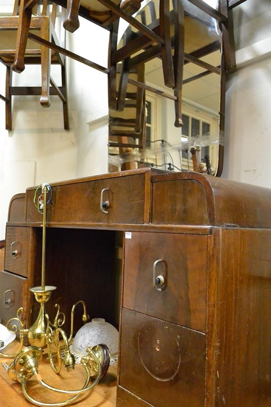 AN ART DECO MIRRORED DRESSING TABLE AND STOOL