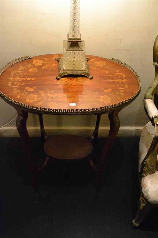 A FRENCH INLAID OVAL SIDE TABLE WITH GALLERY EDGES