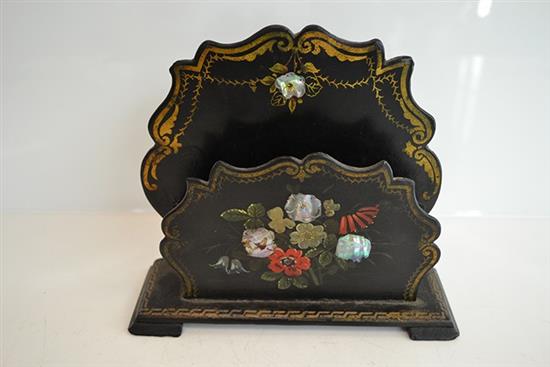 VICTORIAN MOTHER OF PEARL INLAID PAPER MACHE LETTER HOLDER