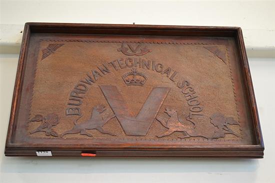 A POKER WORK WOODEN PLAQUE 'BURDWAN TECHNICAL SCHOOL'