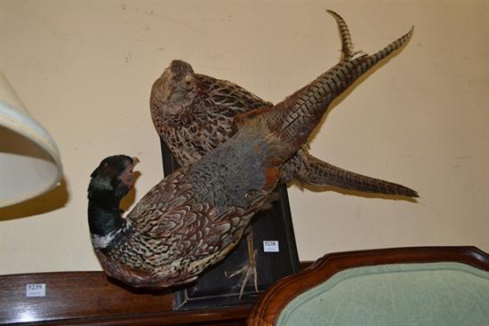 A PAIR OF TAXIDERMIED RINGNECK PHEASANTS