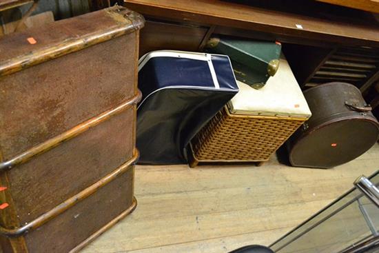 A GROUP OF ASSORTED SUITCASES, HAT BOX, BLANKET BOX
