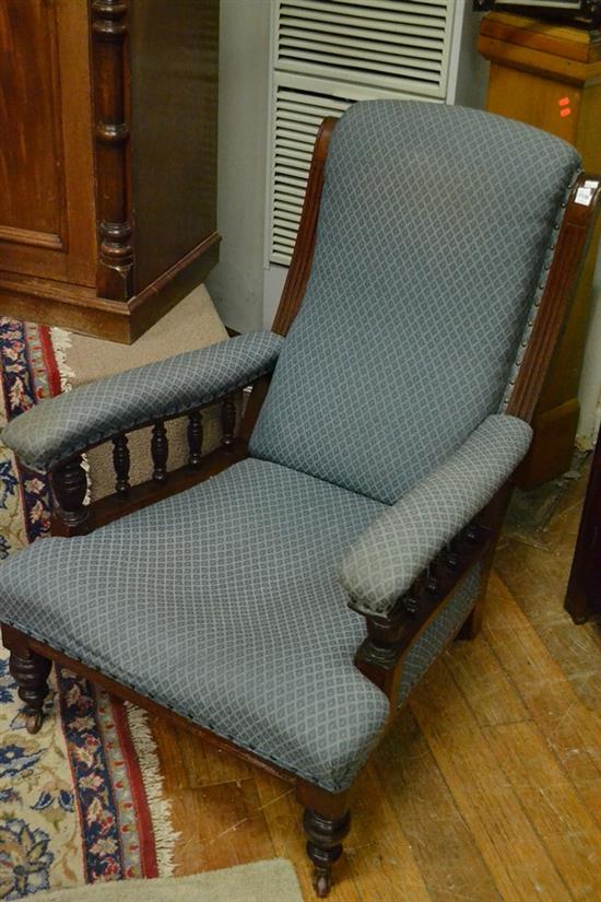 A LATE VICTORIAN WALNUT FRAMED ARM CHAIR