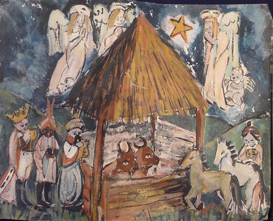 ARTIST UNKNOWN, NATIVITY SCENE, OIL ON CANVAS BOARD