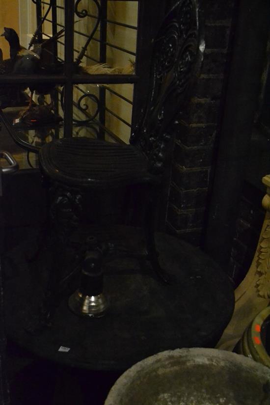 A THREE PIECE VICTORIAN CAST IRON OUTDOOR SETTING