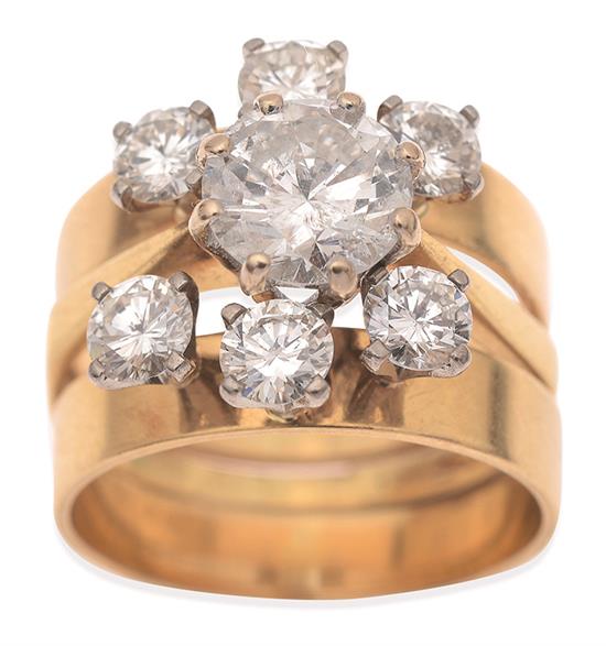 The solitaire diamond ring set with a round brilliant cut diamond weighing 1.30cts in an eight claw setting, together with two fitted diamond set bands totalling 1.32cts, all in 18ct gold, independent valuation available, ring size L-M.