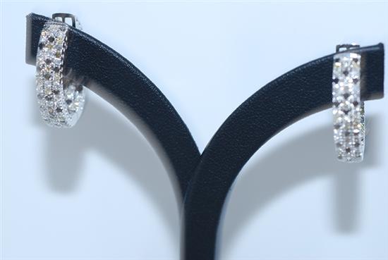 Each oval hoop pave set with, black, white and tinted yellow round brilliant cut diamonds altogether totalling 2.02cts, in 18ct white gold, independent valuation available.