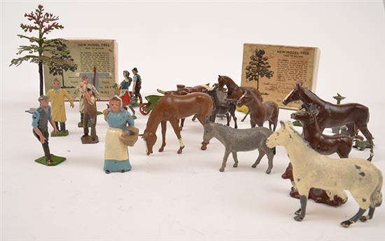 COLLECTION OF BRITAINS FARM ANIMALS AND OTHERS, ALL UNBOXED; AND 2 X MODEL TREES, BOXED (F-VG) (APPROX. 40)