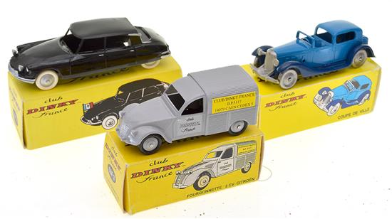 3 X CLUB DINKY FRANCE MODELS INCLUDING CDF3 FOURGONNETTE 2CV CITROEN; CDF11 COUPE DE VILLE; AND CDF10 DS PRESIDENTIELLE (E-M BOXES VG-E) (3)