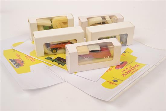 UNBOXED CLUB DINKY FRANCE MODELS INCLUDING CDF17 CHEVAL MECANIQUE PLM; CDF34 CONGES PAYES; CDF27 ARONDE GRAND LARGE; CDF28 2CV SAHARA; CDFH1 VEHICLE RAIL ROUTE; AND CORRESPONDING PRINT OUTS OF BOXES FOR EACH (E-M) (10)
