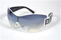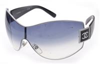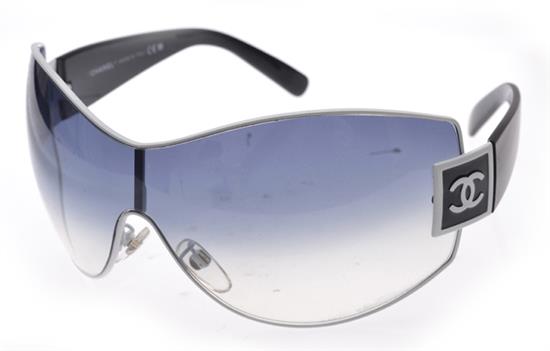 Styled with a single lens, with white metal frame and monogram detail to the sides, with case and original box.