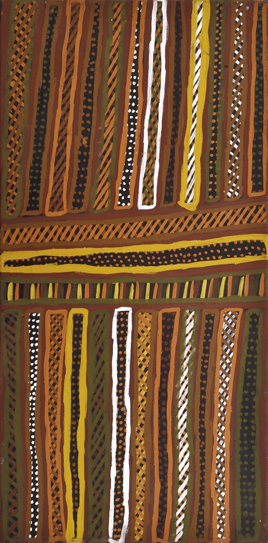 inscribed with artist's name and Munupi Arts and Crafts cat. no. 'MU11JBA110' verso