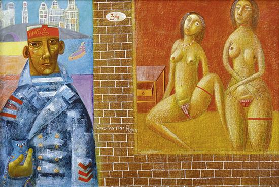 CHARLES BLACKMAN (BORN 1928) Schoolgirls circa 1960 oil on laminated paper