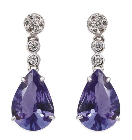 A PAIR OF TANZANITE AND DIAMOND EARRINGS