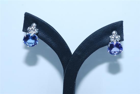 A PAIR OF TANZANITE AND DIAMOND EARRINGS