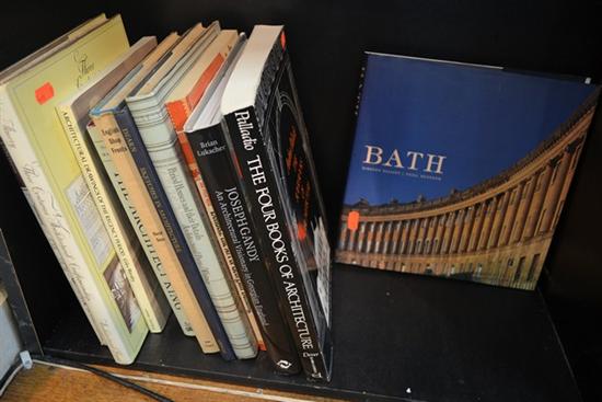 A PART SHELF OF ENGLISH ARCHITECTURE REFERENCE INCL BATH, REGENCY, GEORGIAN, ENGLISH SHOP FRONTS ETC