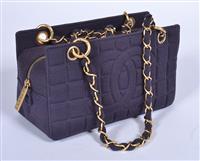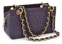 From the 'Runway' collection, the box bag styled in purple quilted jersey fabric with florentined gold metal hardware and conforming woven leather chain shoulder strap, 7807672, authenticity card included, 24 x 14 x 10cm.'