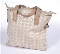 Styled in monogram satin canvas with gold metal hardware and contrast beige leather handles and trim, 8010213, authenticity card included, 35 x 32 x 12cm.