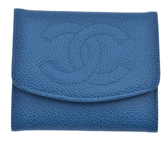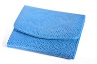Styled in blue caviar leather with embossed monogram, with compartments for coins and one credit card, 1215381, authenticity card included, 10 x 8cm.