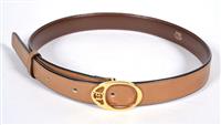 Styled in tan leather with monogram gold metal buckle, labelled size 70/28.
