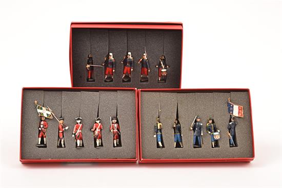 RARE CGB MIGNOT (FRANCE) BOXED LEAD SOLDIERS INCLUDING REF. 21 GARDE SUISSE LOUIS XV; 118A VOLTIGEURS FUSILIERS; AND REF.0046 CHASSEURS (M BOXES VG-M) (3)