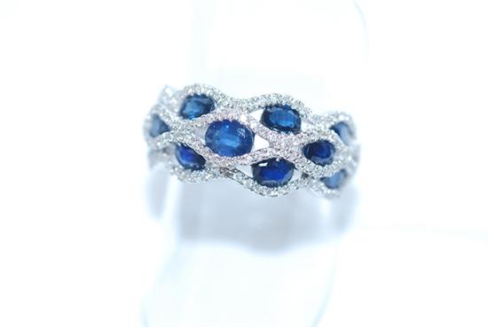 A FANCY YELLOW EMERALD CUT DIAMOND WEIGHING 1.02 CLUSTER RING IN 18CT WHITE GOLD *